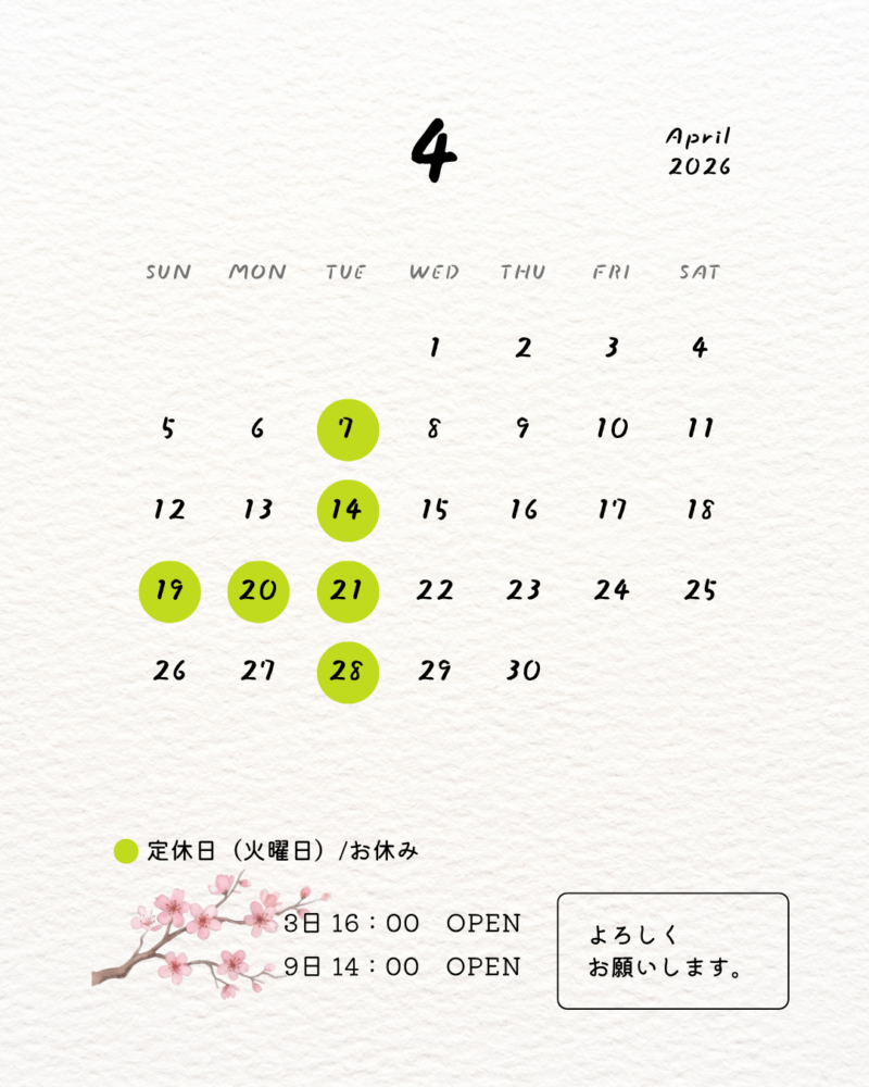 ●4月3日 (金) 16:00~OPEN